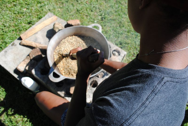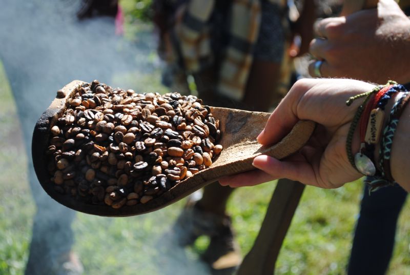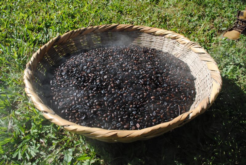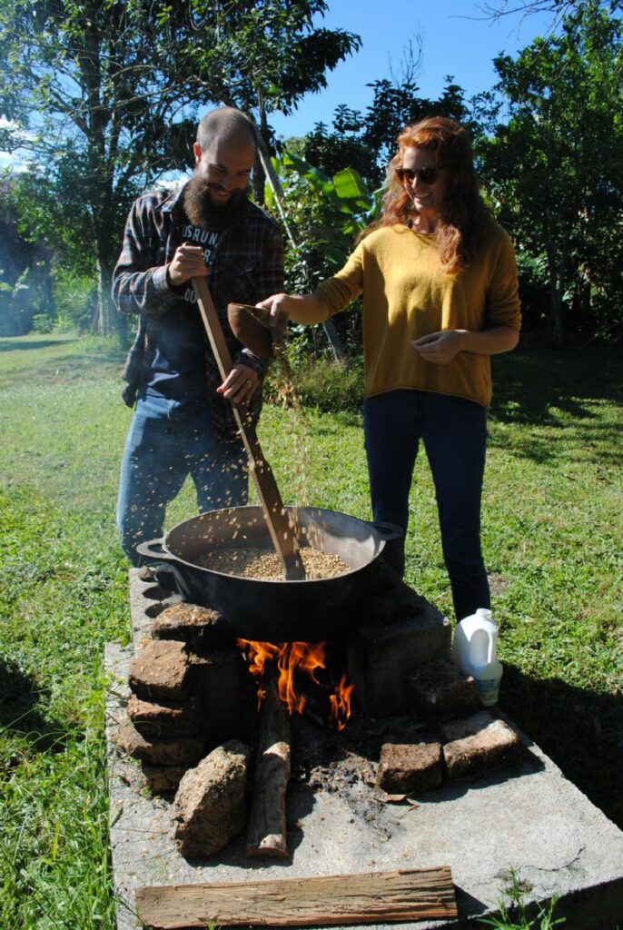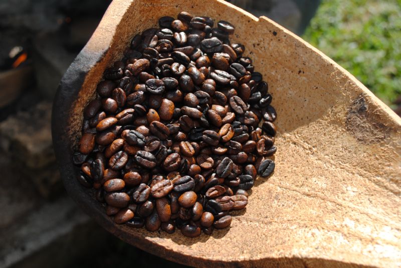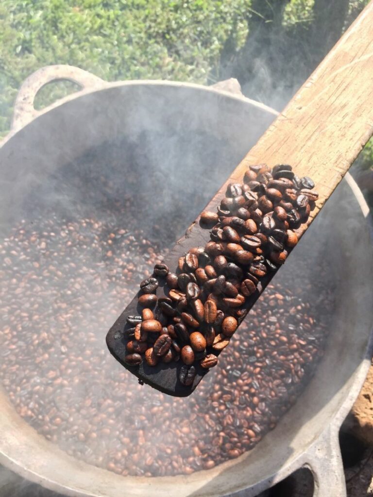 Once the beans had started to roast, we used a gourd to scoop out the flaky outsides of the beans. This was a lot like separating chaff from wheat – just a little Biblical analogy for you (thanks, Joey). After scooping the beans, they were simply poured back into the pot and the unwanted flakes were able to drift away in the breeze. Again, the more thorough you are in this separation process, the better the coffee will taste.