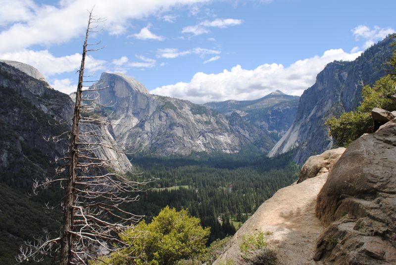 Instead, we settled for hiking the Upper Yosemite Falls. Even this hike had our knees and feet aching on the way back down. We decided not to go all the way to the top because there was a thunderstorm rolling in, and we were both doubly glad we didn’t because we are pretty sure our knees wouldn’t have made it. There were still some pretty spectacular views to enjoy on the way up.