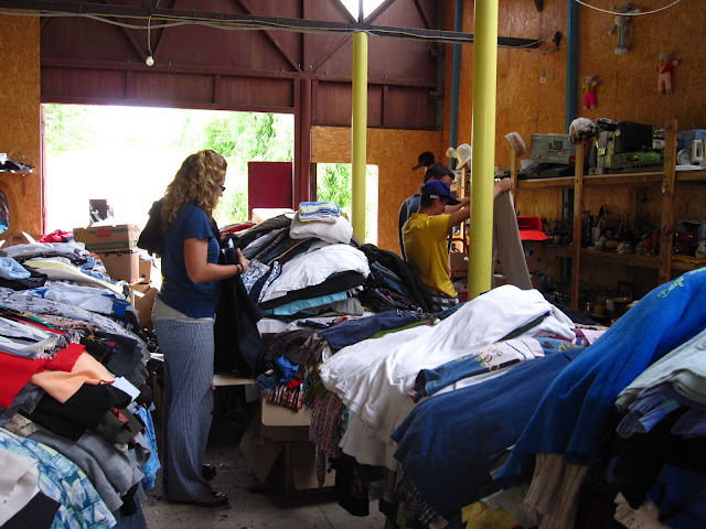 Our first week with Becky was a busy one setting up for a flea market. On the property of Casa Shalom, there are two freight cars filled with donated clothes, home items, furniture, toys, and much more. Our job was to take the boxes from the freight car and bring them to the respected area to be put on display.