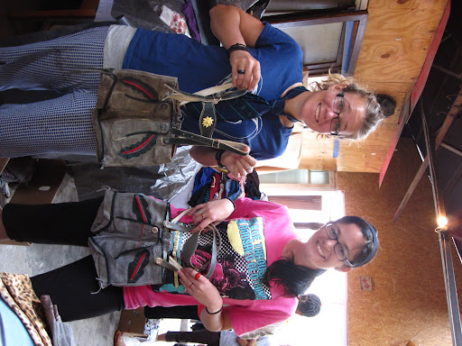 Another job we had to get ready for the flea market was to sort through the boxes. Clothes would be separated into children’s, women’s, men’s, and sorted by pants and shirt. Shoes would just go into a pile in the back for the time being. As we sorted through things, of course we were on the look out for things that we would wear or things that were picture worthy. And of course we also tried to make the most riduculous outfits out of the pieces we could find.