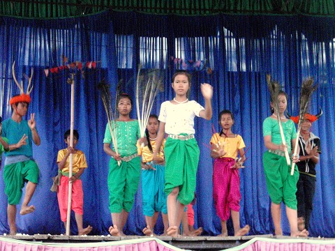 Month 10. Kampong Cham is just a three hour bus ride from the capital city of Cambodia. We left mid afternoon and were surprised to see a air conditioned bus waiting for us! The ride was pleasant and we arrived promptly at 5pm. Our contact, Cecil met us with two Tuk Tuks (these are hard to explain, but they are basically a carriage attached to a small motor bike) to take us to our accommodations. She took us to the place we will call home for the next 3 and a half weeks to drop off our things. She told us to hurry because we would attend a cultural dance performance that started at 5 PM. We were all excited to jump right in and even more excited to experience the culture in this unique way. It was 5:20, so we all hurriedly piled into our Tuk Tuk and sped off. Being 25 minutes late, I expected to walk into a crowded auditorium and have to tip toe through a crowd of people to find a seat. Instead we found one row of plastic chairs set before an outdoor stage. There was exactly enough chairs for each of us and that’s when we realized that the performance was for us. The act was absolutely unbelievable. Unlike anything I had ever seen in my life. The performers wore brightly colored traditional costumes and the dancing was slow and deliberate. Cecil told us that this was part of a monastery and these dancers were orphans ranging in age from 12 to 18. Following the performance, we were taken to the ministry center where dinner was set and waiting for us. We ate a delicious Cambodian dinner outside which was the perfect way to end our travel day.