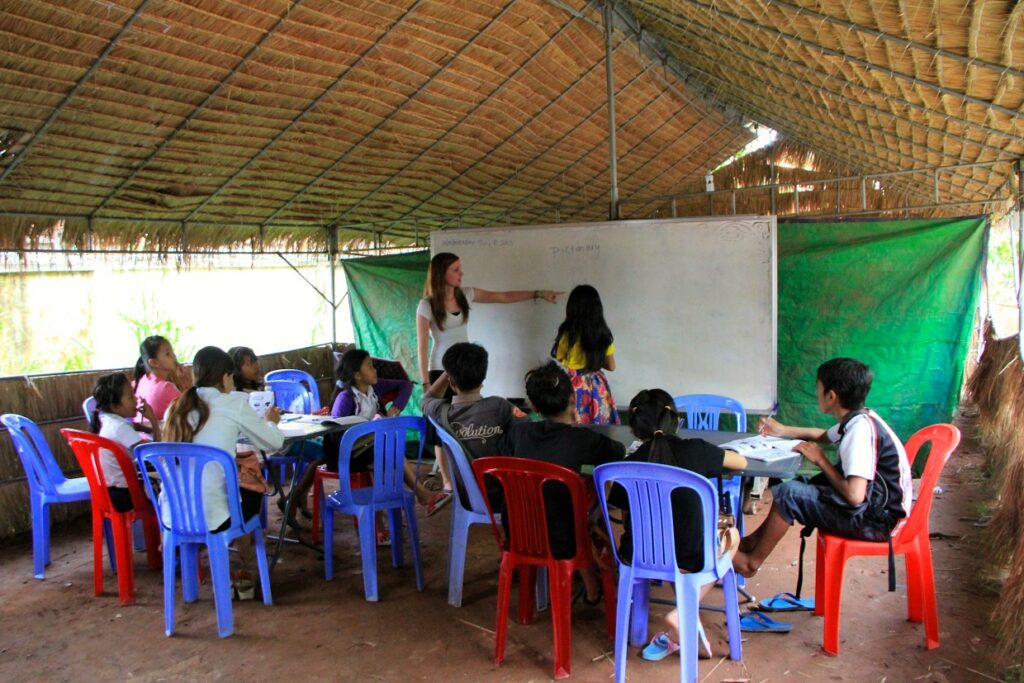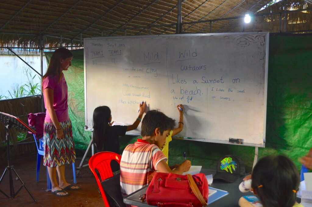 We’ve been teaching for about three weeks now. My class still has their days where I am like did they learn anything? And I felt like I spent most of the day saying “no Khmer (their language)” or “shhh, no talking.” For the most part though they sit quietly at their tables as I teach, they actively participate, and the mimicking and cheating are rare occasions.