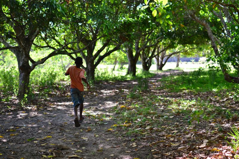 Pictured here is Dioso- he was quite a character and loved picking on our team. I like this photo because it captures his playful spirit and the beautiful cashew grove where we often found ourselves.