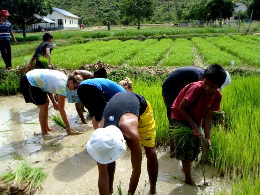 This week we’ve been helping the guys in the rice fields-gathering the rice from the rice paddies. I can’t help but think about the cambodians in the 1970’s who were forced to plant and gather rice everyday during the genocide led by Pol Pot of the Khmer Rouge. So many were forced into slave labor in Pol Pot’s “killing fields” where they died from overwork, malnutrition and disease, on a diet of one tin of rice (180 grams) per person every two days.