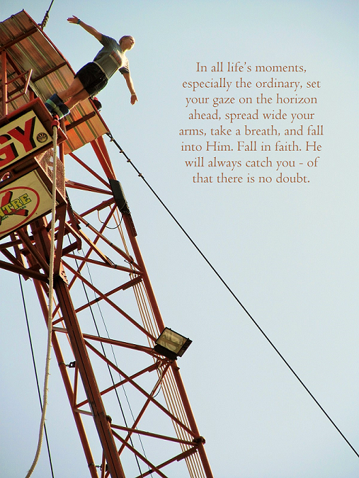 Daily. Daily is how often we need to fall. He desires our child-like faith and obedience. In all life’s moments, especially the ordinary, set your gaze on the horizon ahead, spread wide your arms, take a breath, and fall into Him. Fall in faith. He will always catch you – of that there is no doubt.