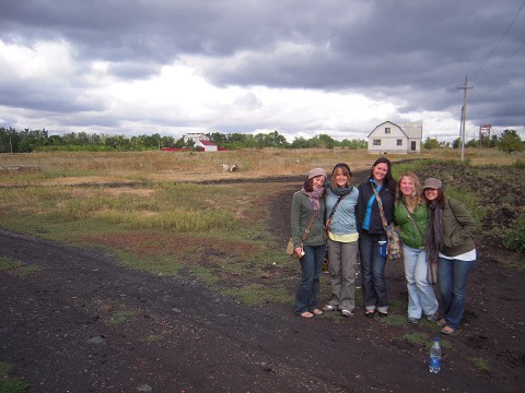 WWII ambulance that was our transportation to the hospital; Right: Plastering the walls
