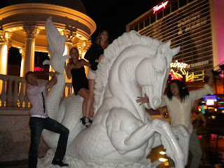 I realized that I was not afraid of Vegas anymore. I felt SO protected, that I saw Jesus all over that town (even on the strip). I was so worried of the dark, that I forgot about my savior and protector and the power He has over it all. I wore my loudest outfit that night, and ended up having the best night of my trip. I ran into an old friend, who is a notorious adventure-seeker and mischief-maker and just flippin fantastic (I'm pretty sure I practically peed my pants when I saw him, because he lives in Houston now). A group of us ended up just making mischief around town. We tried to get on our hotel roof (unsuccessful. The idea that they could've gotten a mattress on one of those is SO fake), moved and messed with sculptures around various buildings, and took pictures on the Venetian horse statues, which are in the middle of a pond.