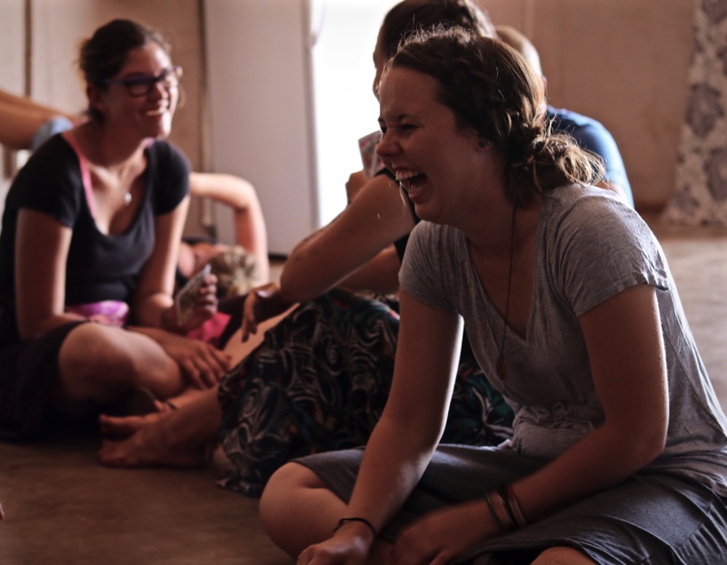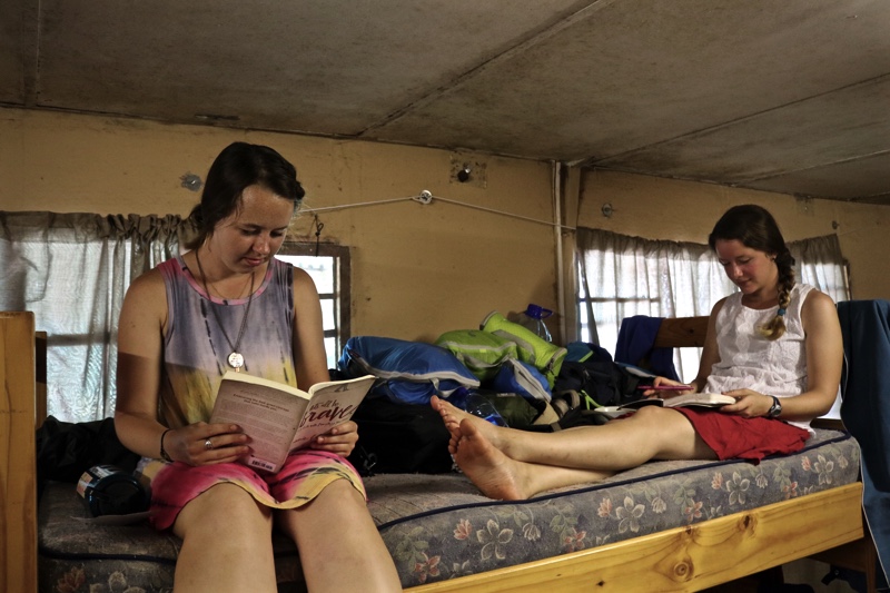 How I spend my off time – reading with friends. We filled our bunk beds with our stuff, but sleep in tents outside! I’m currently reading Let’s All Be Brave.