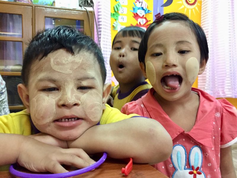 The yellow powder stuff everyone puts on their face is called Thanaka.