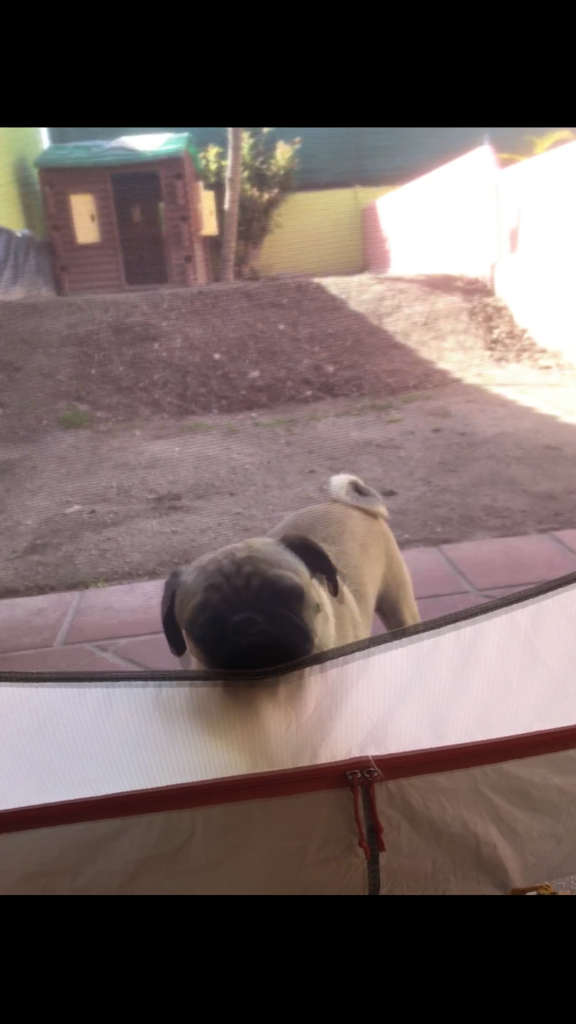 Also, here is a cute picture of our dog Gracie knocking at my tent door. AWWWWW.