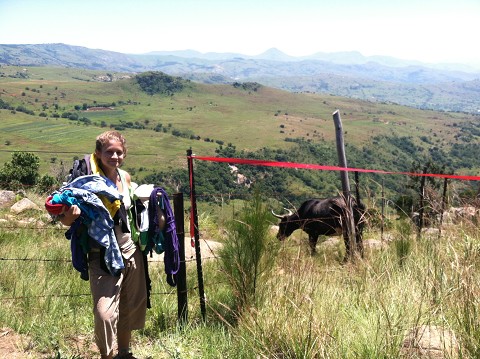 As it fled the scene, I noticed part of my bra on the ground. I glanced back up at the line, and I noticed a gap: 1 pair of undies and 1 sports bra were completely gone from the line where I had clipped them. There weren’t any remnants on the ground, they hadn’t been wrapped on the cow’s horns, and I didn’t see them leaping down the mountainside singing “the hills are alive with the sound of panties,” I came to a conclusion: The cow ate my underwear… whole.