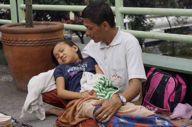 We headed home with two bags full of bananas, oranges, and cereal, and a bit of Hannah’s spunk. We filled Darlene and Audrey in on our newfound joyous eleven year old pal as we climbed the stairs of the crossing bridge. There at the top of the steps sat a father with his daughter in his arms. A couple of us dropped a couple pisos in the cup and continued on our way. Immediately our stomachs clenched, and Audrey suggested we go back. We knelt around the two and held hands as we asked God to heal the young girl. Romy looked about eleven years old. Her body was limp, skin was wounded, and lip showed a clef pallet scar. Her father’s eyes flooded our hearts with love and desperation.