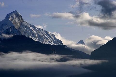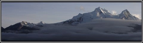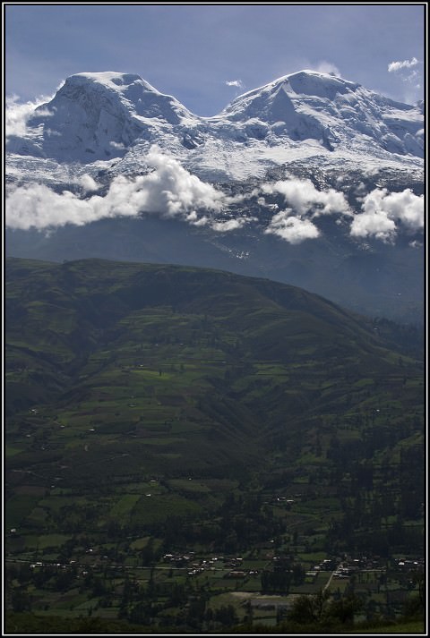 Perspective of Huascaran looming over the valley below