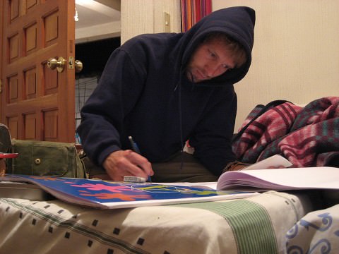 I always hit my head when we get off, that roll cage thingy is far too low for your average American, even a short one like myself. It is Wednesday, I speak for the first time of the trip, “Last one” I mention to Luis. Edras waits with his notebook in hand, smiles, he really smiles too big, makes is cheeks all puffy and high, so does his brother, makes them hard to draw. Luis pays for “dos”, its his turn, our silly trading game of generosity, same money in the end, but you feel better this way, you feel connected, friends take care of friends, Luis is my friend, I will get the next hitch. Gleams and smiles from many little ones as I reach the door, they have never played with me, but I have played, and they have seen me play. I have broken them, it is easy, a simple quirk, a tongue protruded, a obscene noise with face clinched, even a small smile can break them, best shown unexpectingly, then you are free to swing and dance with their hands never endingly clasped to yours. You never see their face after that because they are always by your side, you look down and see only the top of their head, black hair, always black, hugging kneecaps.