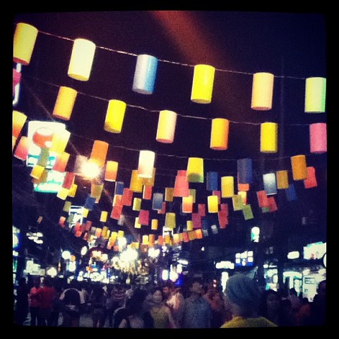 Other men sit at the bar, beer in hand, a Thai woman half his age holding the other.