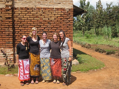 our home in the village outside the church in our African skirts