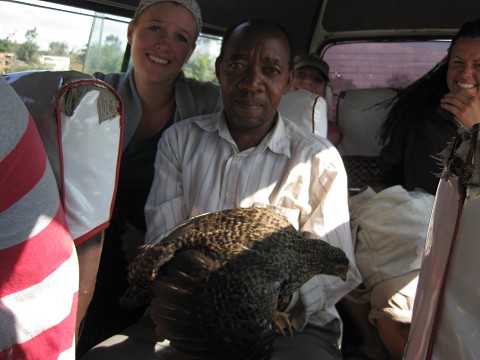 About 15 minutes into our ride we picked up our first passenger- a man with a chicken. I don’t mean