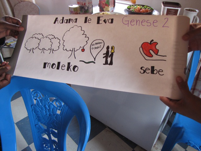 WE made scrolls for the people in the village to help explain the Bible .. we started with Creation because some of the people had never heard of Jesus
