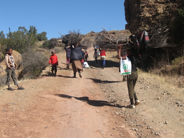 THis gives new meaning to heating your house.. a common site in LEsotho.. kids carrying firewood or river water
