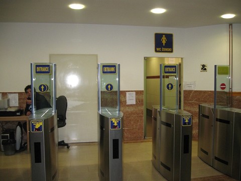 This looks like a border crossing.. no it is the bathroom in Croatian bus station