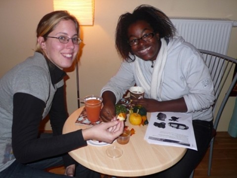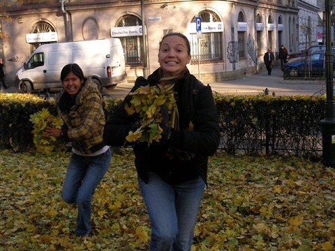 Me and Becca enjoying caramel apples and hot cider during break from teaching English in Poland