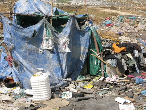 My home is a tarp held up by pieces of wobbly wood. My home is on the land fill…. not next to it but right on top of the trash that other people throw away. I am surrounded by flies, disease and a horrible stench.