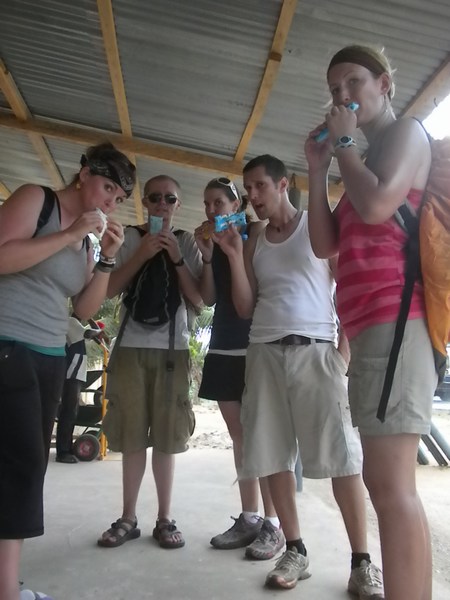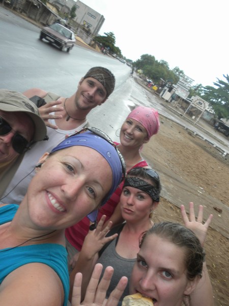 Taking shelter during the rainstorm                                            Drinking fanmilk for fuel.  It’s like putting a
