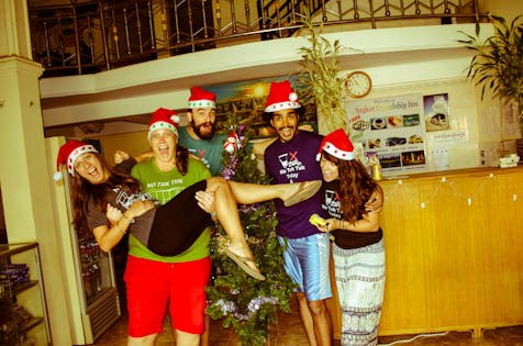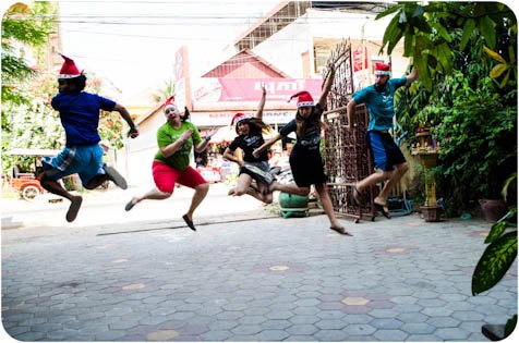 It has been such a blessing getting to spend Christmas here in Siem Reap, Cambodia! After skyping with family back home, our team gathered together in the morning for breakfast in our hotel and then opened our “stockings,” (filled santa hats) together! Candy, peanut butter, a bracelet, a face mask and other awesome tidbits were exchanged. We even wore our “No Tuk Tuk Today!” shirts as a family – only funny if you’ve experienced the nature of the wonderful Cambodian tuk tuk drivers, whom consistently press that they can drive you around for the day.