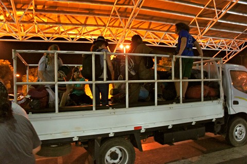 going there or what we’re going to be doing. So we all pile into our transportation for the month, the back of what looks like a cattle