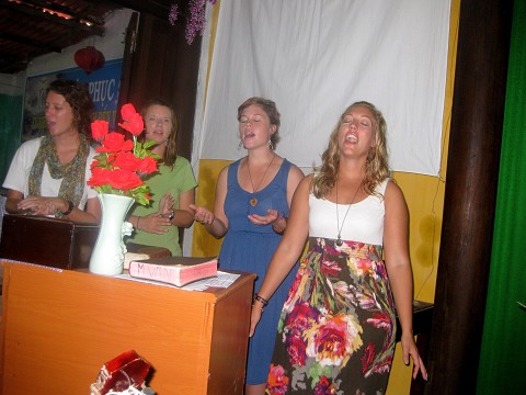 “How Great is Our God” at the top of my lungs from a microphone at the front of