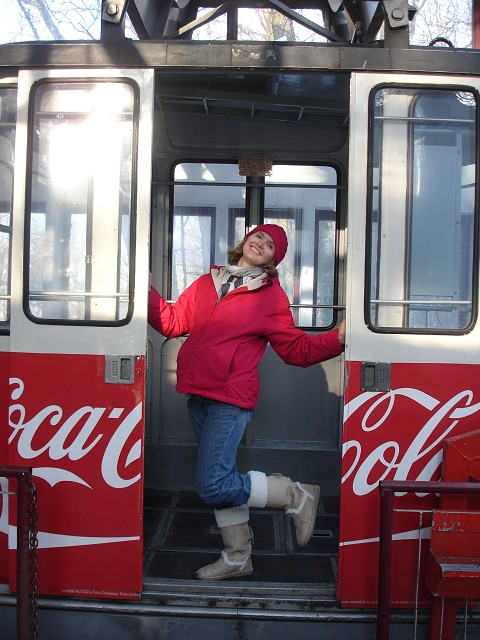 We took a cable car ride to the top of the mountain to get a view of the city.  The view wasn’t very impressive, but I liked this picture!