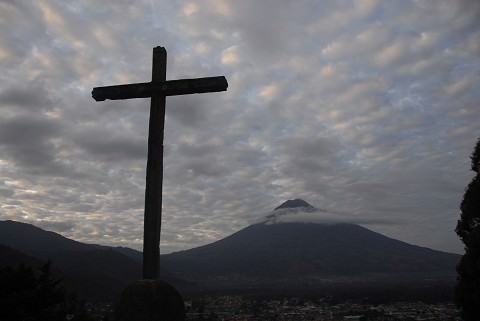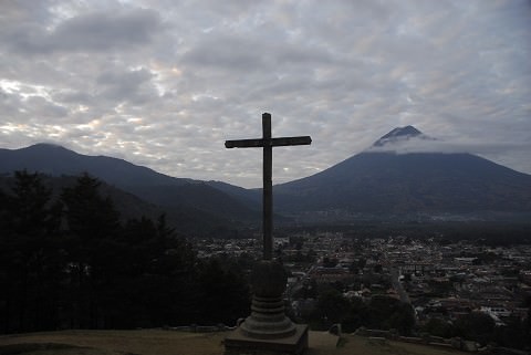 There’s an overlook to the city of Antigua and a cross planted as a beacon over the city. The cross is visible from different places in the city, and the entire city is visible from the cross.