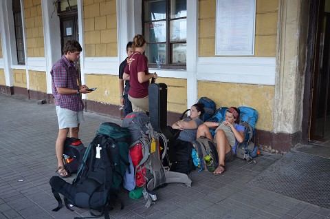 We finished up our time in Bucharest, Romania on Saturday and had to catch our 1st train to Belgrade, Serbia at 8:45 on Saturday night. We arrived at the train station around 7:30 with plenty of time to catch our train. We decided to buy some water and snacks as we had a 13 hour train ride ahead of us. The train we needed to board arrived and as Jenny described it, we got to play Tetris with our backpacks. We had a 6 person cabin for 6 people, 6 large backpacks, 6 daypacks, a guitar and a few bags of food. Three rules for world race packing.