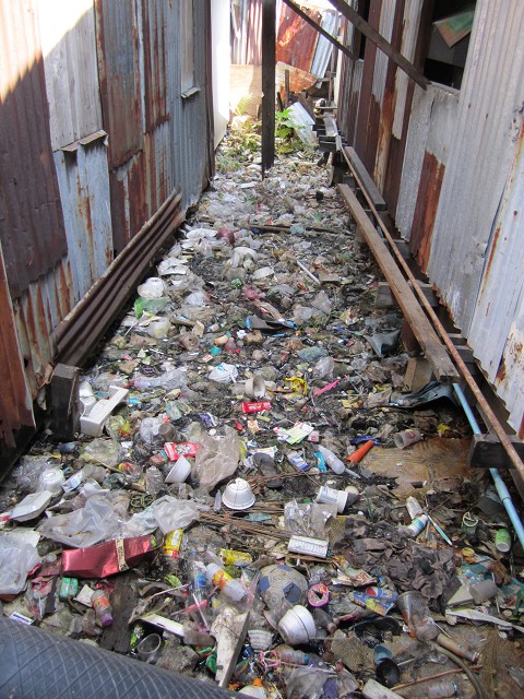 Khlong Toei used to be the home of the only major port in Thailand.  Others have now been created, but most of the slum land is owned by shipping companies or the city.  At any moment, the people be evicted.  People live off the narrow alleys in small shacks and rooms.  Most sit in the alleys talking with neighbors or in doorways removing the bones from chicken feet.
