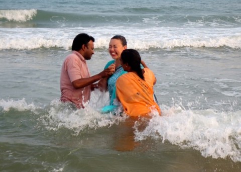 So on Saturday, February 9, 2013 I was dunked not once, but twice, in the Bay of Bengal (part of the Indian Ocean). I was a bit resistant on the first dunk and pretty much table-topped, so Pastor K dunked me a second time. Ha! There was laughter, joy, and a rush from the Spirit.