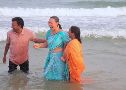 Fast forward to month six. I’m in India. Pastor K and his wife Diamond, our contacts, offered to take us to the seacoast. The first thing that popped into my head was, “Should I ask him to baptize me?”