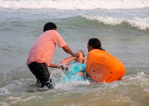 Fast forward to month six. I’m in India. Pastor K and his wife Diamond, our contacts, offered to take us to the seacoast. The first thing that popped into my head was, “Should I ask him to baptize me?”