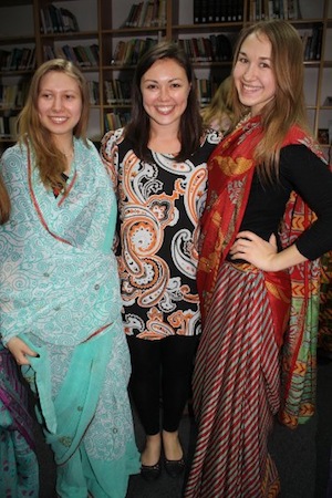 Polina and Alona trying on my saris from India