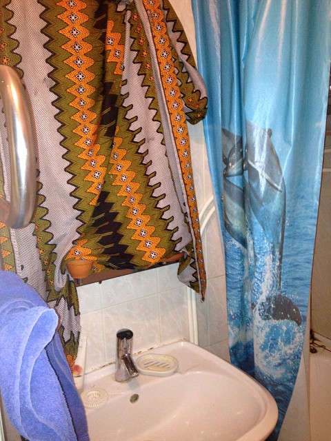 The five mirrors in the apartment were covered with bed sheets, fabric from Africa, and other linens we found in the apartment. We made it work.