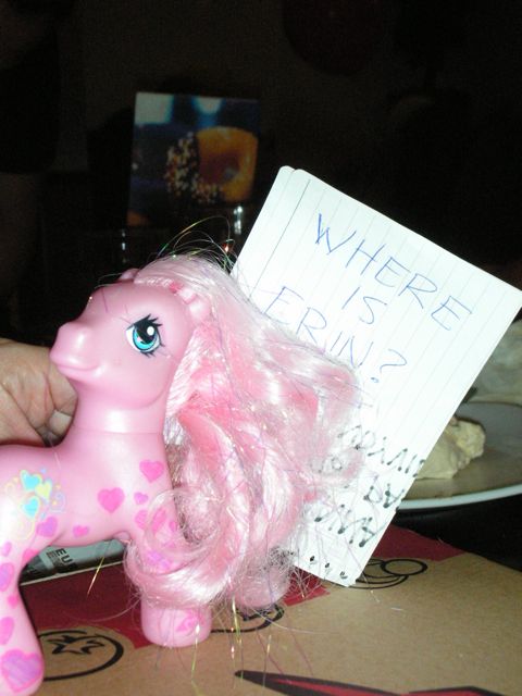My little pony: so I have this pony that was sent to me upon request of a horse to keep me company. She has been traveling with me since India and her name is Manny. She was recently kidnapped by some teammates of mine and taken to Pizza Hut but because of my great detective skills as well as my ability to intimidate a she was recovered and is safe and sound.