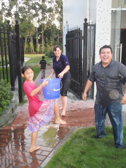 Water fight in China: its all fun and games until someone gets really wet! Hephzibah teammate Laura and Jake Rodriguez