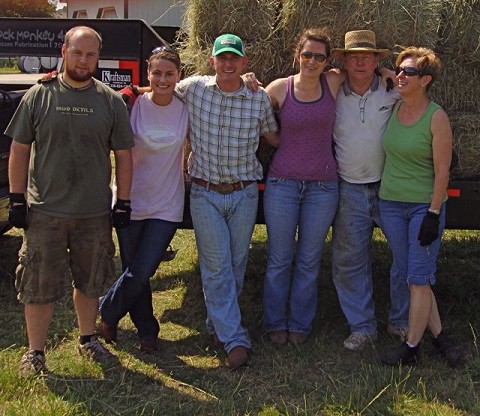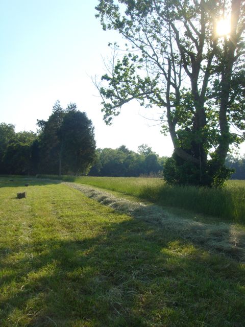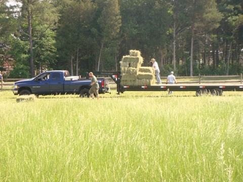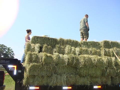The timing of my trip home was perfect. There was hay in the pasture that needed to be baled. This is what we refer to as an “all hands on deck” job. Hay is a tricky business because you have to time it just right with the weather. Once the hay is cut it needs a few days to dry and then it must be raked in to rows with a machine pulled behind the tractor and then baled with either a round or square baler. Round bales are big and must be moved with a tractor but square bales weigh about 40lbs and must be pulled out of the pasture by hand. The technique here is hooking a truck or tractor up to a large trailer and driving it around the pasture slow enough to walk along beside it and toss up the hay bails to someone who is stacking them neatly on the trailer. Sounds easy enough until you have about 200 or more that need to be pulled out of the pasture that day because if they’re rained on then they’re no good! Its quite a workout and a challenge!
