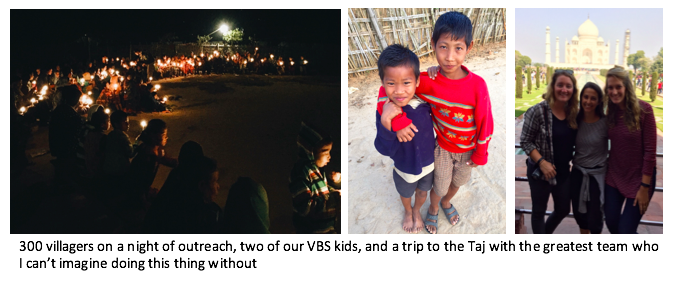 Month four brought a refreshing change as we began our time in India. It was a month of faith. This was partly because God gave me invitation after invitation to have faith, asking in the midst of challenges, “Do you trust me?” and partly because in these things, He showed me His faithfulness again and again. On a night of hard news, He gave me peace and literally hid the moon so I could see a sky full of stars. The village we were living in was filled with darkness, but He reminded me that light is infinitely stronger than darkness—and as children of God who carry light, we change atmospheres by simply being in them. Many people in this village are Hindu, and we would have given our right arms to see them all come to know Jesus… but He reminded me that our job is to simply plant seeds and trust Him to water them even after we leave. So one night, we hosted an event to bring new people in… over 300 people came! Since then, they already have one new believer. It’s like God is saying, “See? Do you believe me now that I love them even more than you do?” And as He taught me about faith, He also taught me that the joy people have questioned in my life is real because it’s rooted in a deep belief that God is good—no matter what is happening. Life will forever be filled with both mountaintops and valleys, and unwavering faith will carry us through them all.