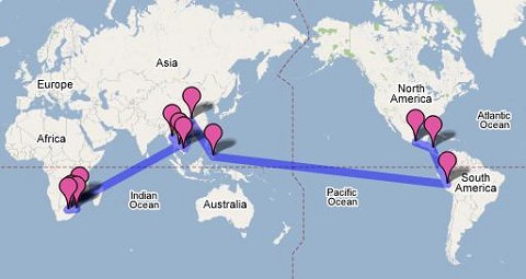 click here for the Route Map and Pictures link. Once in Google maps, click on a country listed on the left. Each country has a different picture that will pop up.