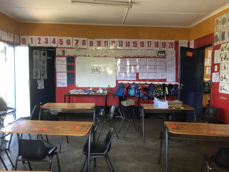 School is just half a day. Our teacher speaks mostly in English to the kids. Every morning the students introduce themselves in front of the class. They sit at an assigned spot sharing a table with their peers. We collect their homework books and the dot out their names and the letters of the alphabet for them to practice handwriting. They sing songs and color with crayons- picking one color at a time from a collection of them in a box at the front of the room. The kids have a lot of energy and each have their own unique personality that stands out. There is no clock in the classroom. School start and end times seem flexible. Ms. Mbali makes the kids laugh. We correct their work as we go along in a workbook. They all eat outside together at break time. The kids LOVE to sing, dance and play games. I taught them how to start a congo line! On the other side of the playground which consists of a couple swings, a teeter-totter and tires, there is a cover area volunteers cook food for kids to bring home. They make a fire, mix in protein rich rice packets in huge caldrons and use a giant wooden spoon to stir. I helped them sort through beans for a meal later in the week, served with a corn based mash mixture called pop.