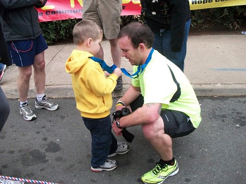 Ive had him cheer me on for a marathon, have him ask if he could run with me. Had him ask why I had to run another 13 miles, because I had already been gone for so long. I have crossed a marathon finish line with him right beside me. I have wiped his butt and back from poop being squished all over the place, even in his hair. We have stood next to the ocean and watch dolphins jump in and out of the water