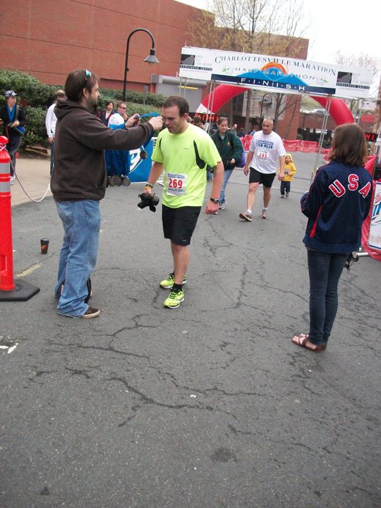 There was one point in the race, mile 22 and 23, I dont remember a single bit of it. It was kinda like I was running while I was asleep, and I woke up and saw the 24 mile marker. At that point, I was walking, but the adrenaline started pumping and I began a slow jog, something that was slightly faster than a walk. But I just kept going. I caught people who had passed me earlier in the race. They were feeling exhausted, and began walking. Just like Travis had done for me, I slowed and told them they could do it. I didnt think my words would be too much of an encouragement, but this lady, who was also doing her first marathon, began jogging again beside me. I remember her telling me that she hurt incredibly bad, but I told her, I know, but keep going, that she could do it! She said “Yes I can,” and kept going. I hit mile 25 and I told her I would see her at the finish. The last 1.2 miles, I ran probably faster than I had any other part of the race. My calves and hamstrings were cramping and contracting, but I fought it. I could see the finish line, I wasnt going to stop! I picked up my pace even more. I have no idea how, but I picked it up!