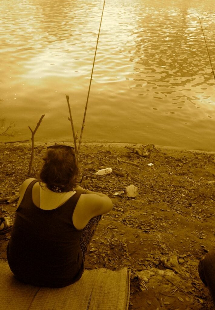 you go fishing with a pole and a net attached to the end of it
