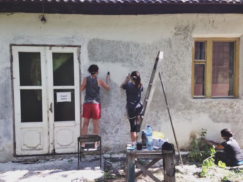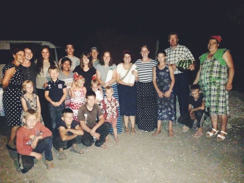 // One of our ministries was scraping “Soviet Union” paint of this building with wire brushes. We also painted the outhouses. There’s nothing like a hard, day’s work! //