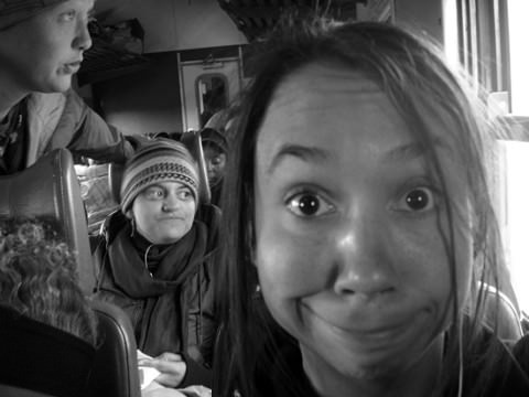 Our train made consistent scheduled stops, a couple of them taking over an hour. It was most definitely cold all night. Those pesky teens laughed in our ears until after midnight, when the guy with the liquor bottle tucked in his sleeve danced down the aisle singing at the top of his lungs. The 3 screaming kids screamed in turn… all night. The bathrooms were so hideous, it was comical. By morning, our train was officially 3 hours behind schedule. Fearful of drinking the water on the train, and with no projected arrival time, we had to ration what we had left in our Nalgenes. Some attendants said we’d get there at 7pm, some said 11pm.